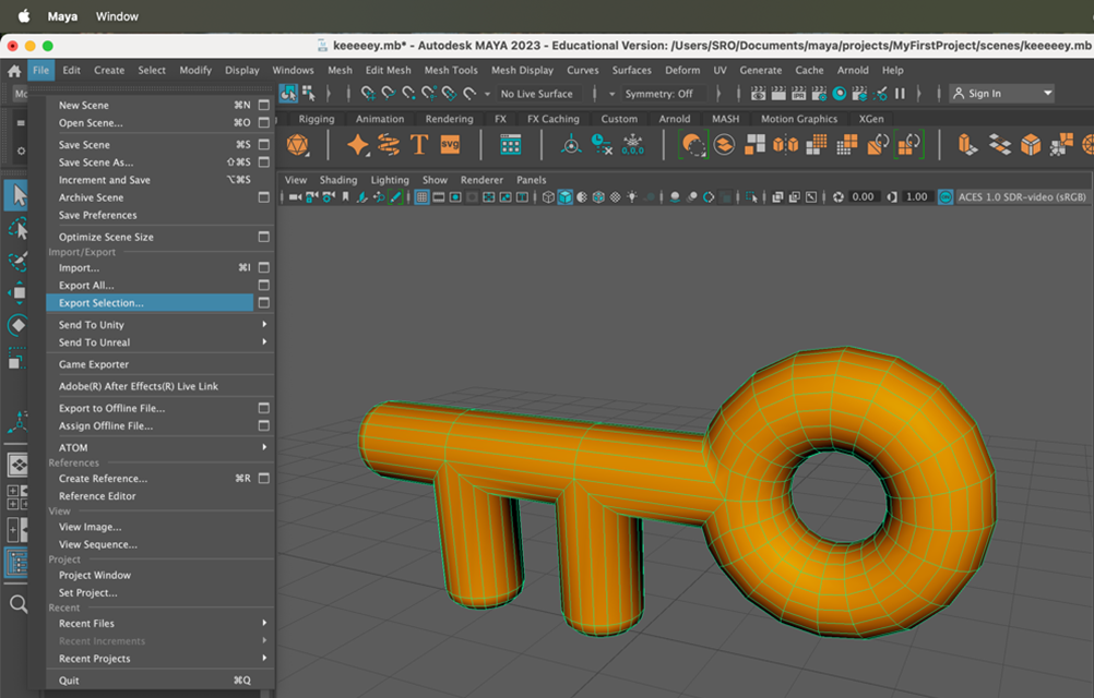 Export your collectable from Maya by selecting your object (Q) and clicking File > Export Selection.