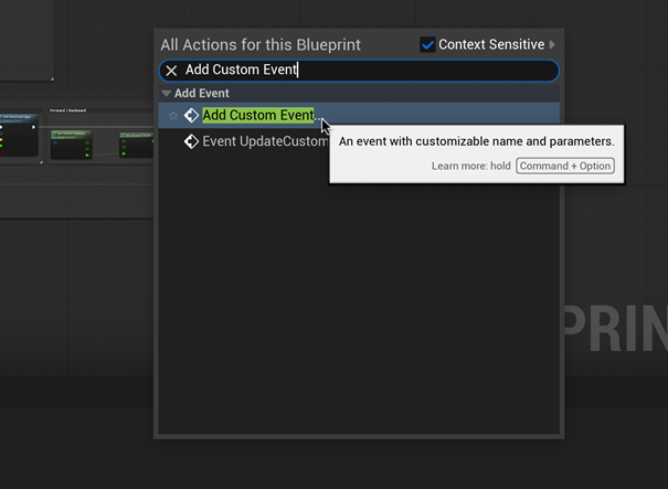 Right-click a blank area of the Event Graph to Add Custom Event. Name this event “Respawn Player”.