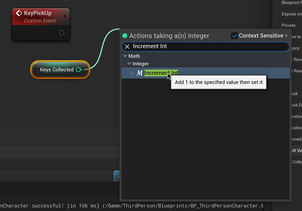 Connect Call Key Amount to the Incremental Int node as shown (note the dull lines). Click Compile.