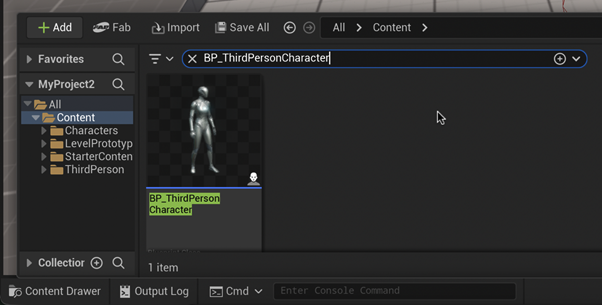 From the Content Drawer, search for “BP_ThirdPersonGameMode” and double-click to enter the blueprint.